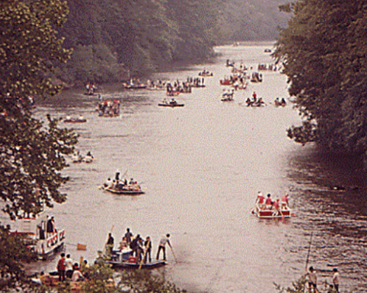 The inaugural race began at Morgan Falls and ended somewhere downstream - no one quite knew or cared where the race would conclude. What mattered was the thrill of the float and the sense of camaraderie among competitors. The event rapidly grew in popularity, and by the early 1970s, it was no longer just a college event but a community-wide celebration of the river. People created all kinds of handmade rafts, ranging from simple floats to elaborate designs - one memorable year saw a 34-foot pirate ship set afloat, only to sink during the race.